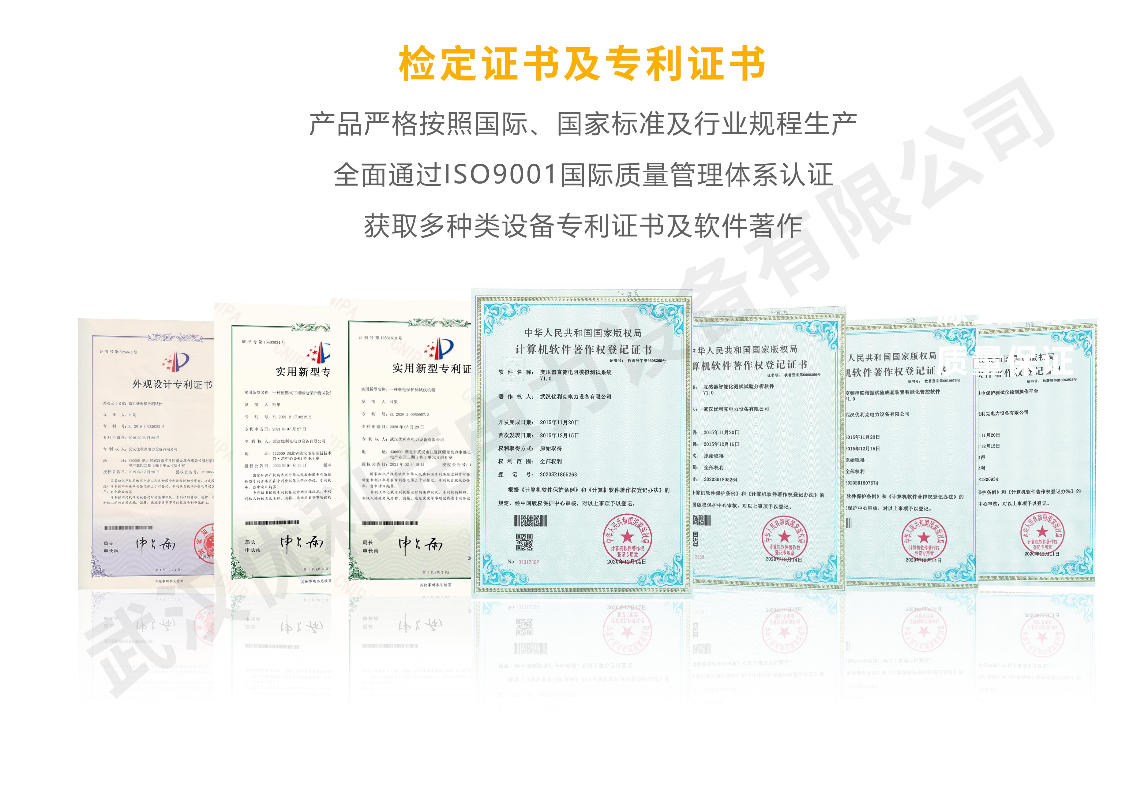 企業(yè)產(chǎn)品嚴(yán)格按照國際、國家標(biāo)準(zhǔn)及行業(yè)規(guī)程生產(chǎn),通過國家、各省級、市級電力研究所、計(jì)量中心及電力權(quán)威部門的檢測,全面通過ISO9001國際質(zhì)量管理體系認(rèn)證、中華人民共和國制造計(jì)量器具許可證、GB/T19001-2016質(zhì)量管理體系要求、GB/T24001-2016環(huán)境管理體系要求、GB/T45001-2020職業(yè)健康安全管理體系要求。