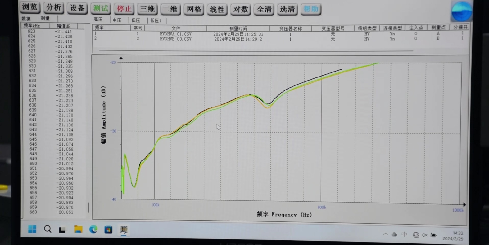 三相繞組間對(duì)比:將三相繞組的頻響曲線繪制在同一坐標(biāo)系中,對(duì)比其形狀和幅值。正常情況下,三相繞組的頻響曲線應(yīng)具有相似的
